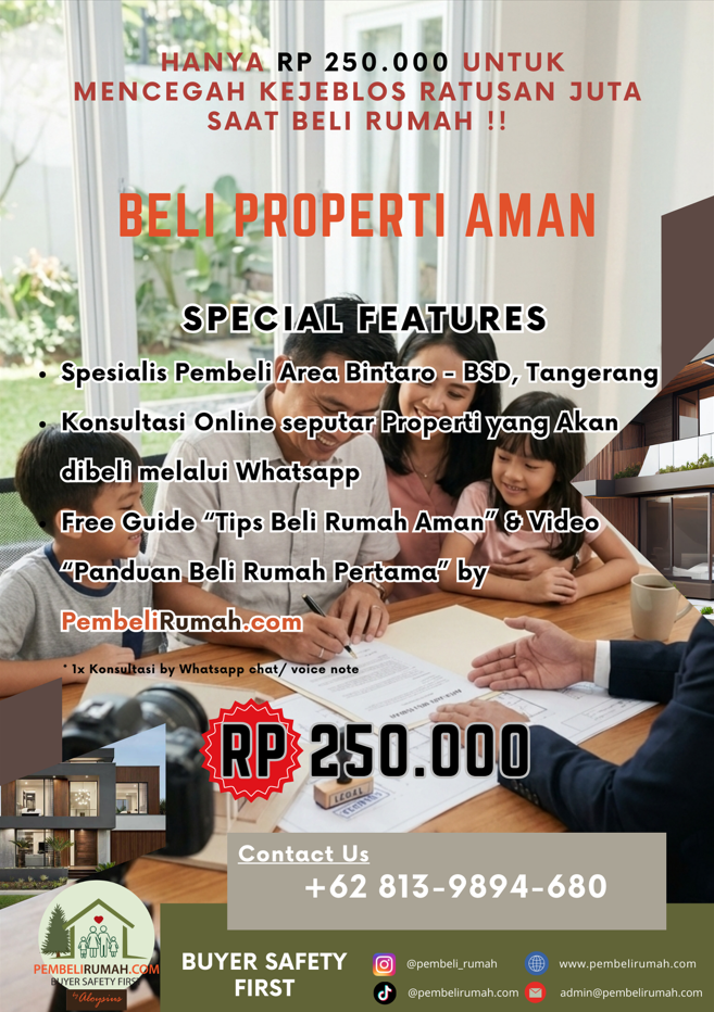 "Beli Properti Aman” merupakan konsultasi berbasis online yang dilayani oleh team expert PembeliRumah.com dengan pengalaman lebih dari 20+ tahun di bidang properti, tersedia untuk membantu pembeli properti dengan semua pertanyaan & saran sebelum membeli properti.