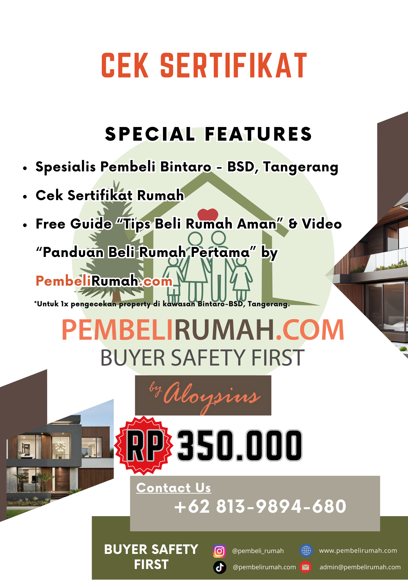 Konsultasikan pembelian properti Anda melalui Whatsapp atau melalui situs web kami PembeliRumah.com untuk mewujudkan transaksi yang aman.