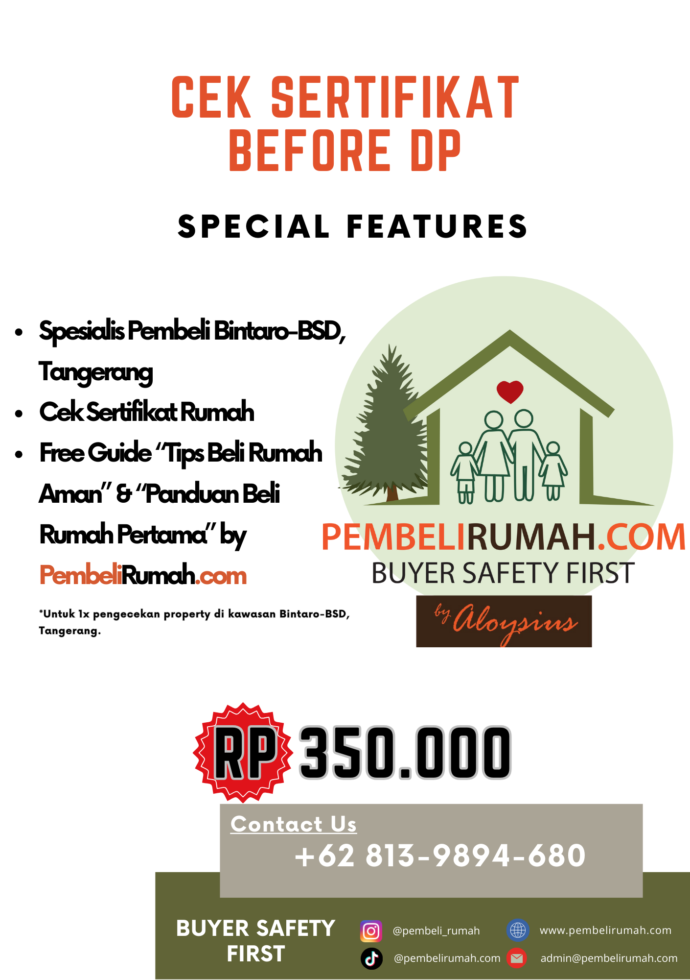 Konsultasikan pembelian properti Anda melalui Whatsapp atau melalui situs web kami PembeliRumah.com untuk mewujudkan transaksi yang aman.